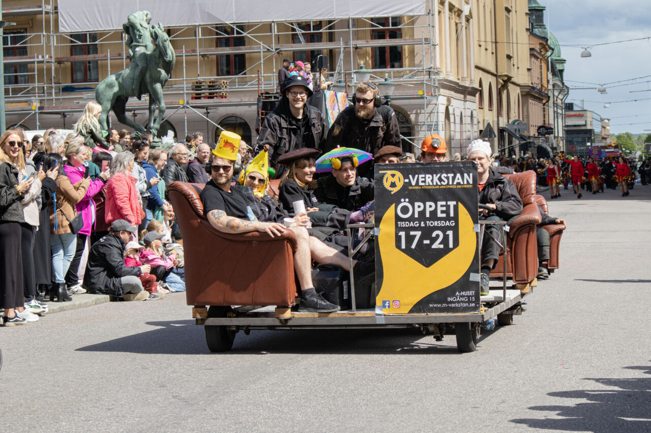 And the festival sets its mark on the whole of Linköping, in particular when the SOF carnival progresses through the city. More than 50,000 people gather to see the student orchestras, interspersed with LiU student floats, which are usually built on an open lorry. The entries follow a particular theme, and are created during the few final intensive days before the festival, when this year’s “construction song” plays repeatedly over the loudspeakers – usually a well-known singalong Swedish chartbuster, designed to become an earworm for all who hear it.