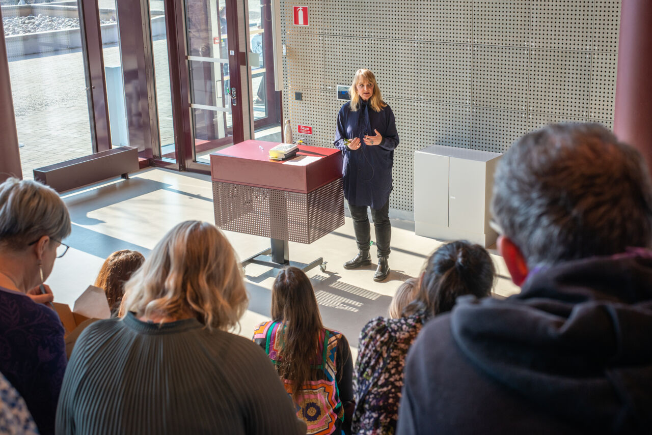 Claudia Tazreiter uppmanade åhörarna att "inte titta bort” utan verkligen följa och sätta sig in i det som händer i Ukraina. Men inte bara där – krig och flyktingkriser finns på många håll i världen.