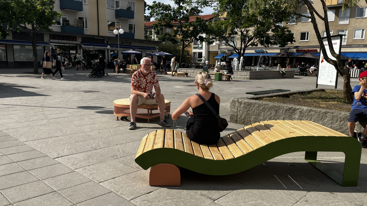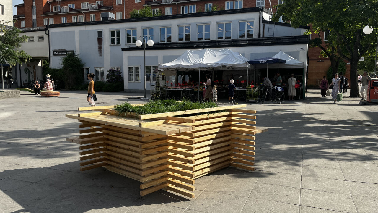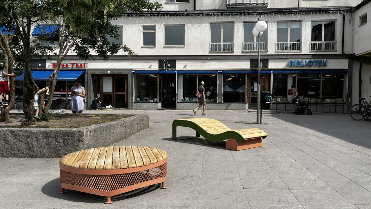 Redan i februari ställdes studenternas egentillverkade prototyper ut i Greenhouse under Stockholm Furniture Fair. Efter lite kompletteringar och nytillverkning hos Lundaverkstaden i Spånga har de färdiga möblerna nu fått komma ut och sola sig i verkligheten.